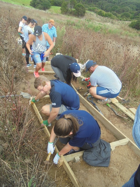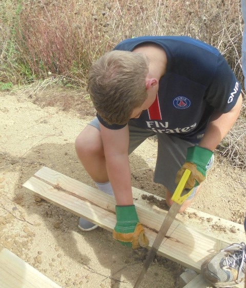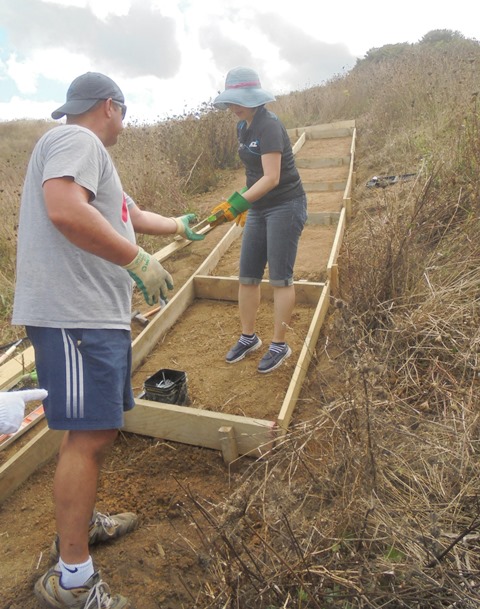 This team picked up where the previous group had left off and the plan for today was to finish off a section of steps that needed to be boxed in and to build a small retaining wall along a stretch of straight track.