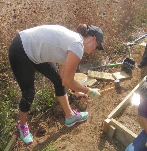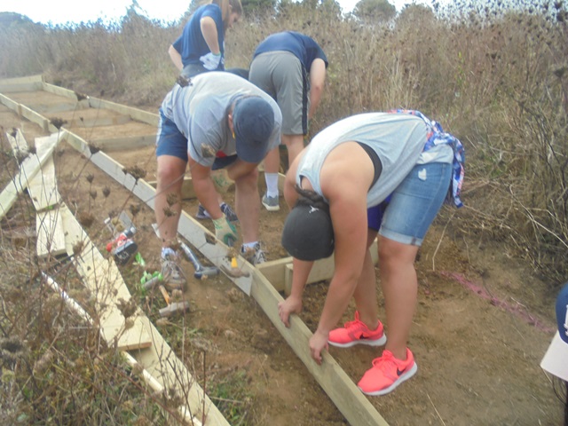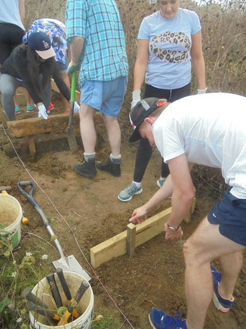 The team took some time to study the steps that needed to be completed and came up with some ideas for improvement. They dug out some of the old steps that had shifted with the earth movements and realigned them and then did the boxing.
