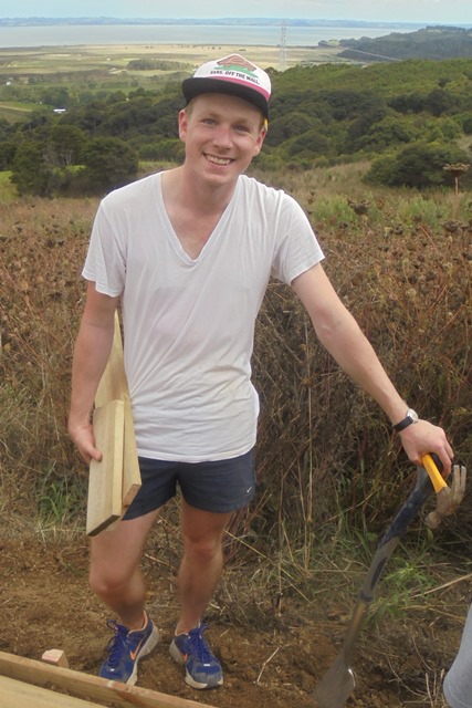 Once they finished off the steps, they continued onto the straight section. This task required digging a straight foundation for the retaining planks and cutting and fixing them into position.