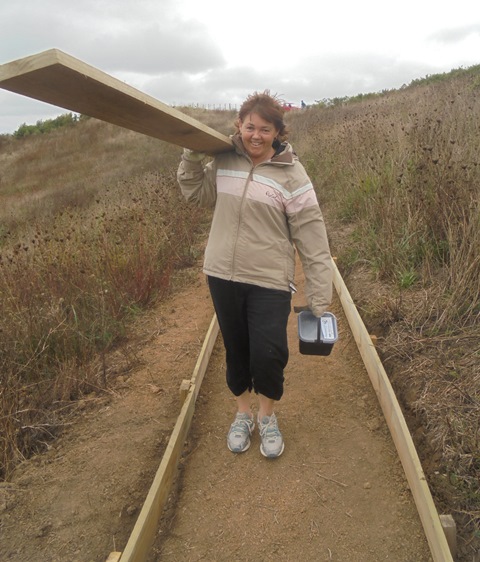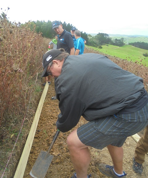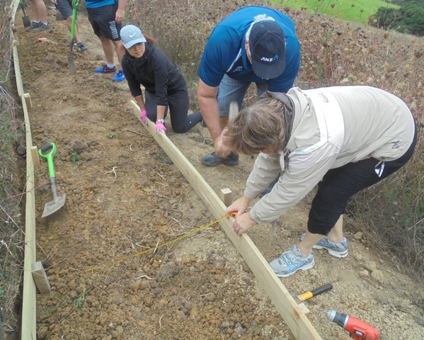 This team picked up where the previous group had left off and the main task for today was to build small retaining walls along a long section of track and if time permitted, to finish off some steps that needed to be boxed in to prevent erosion. We drove up to the top and went to work.