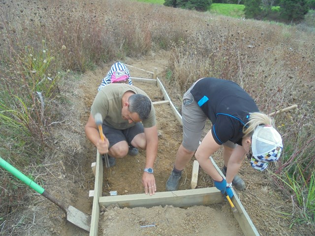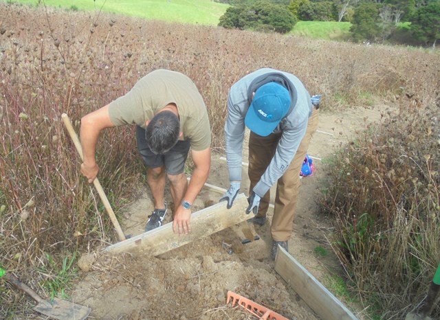 The plan was to continue to finish off the new walking track at the top of the property. The section of track we are working on was built across a sloping section of the property and it is therefore prone to erosion. Soil can wash down from the higher ground onto the track and the track surface can also be washed off onto the lower ground on the other side.