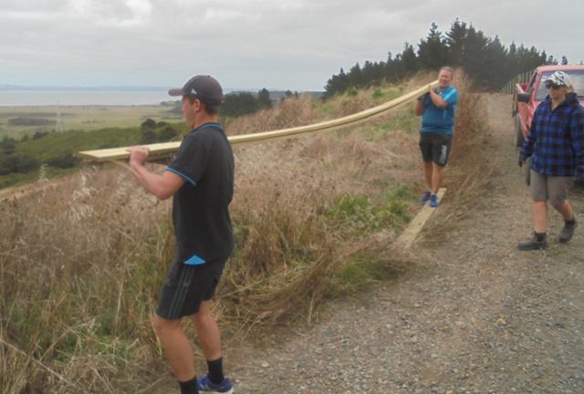 They continued down the track, fastening in the long boards.