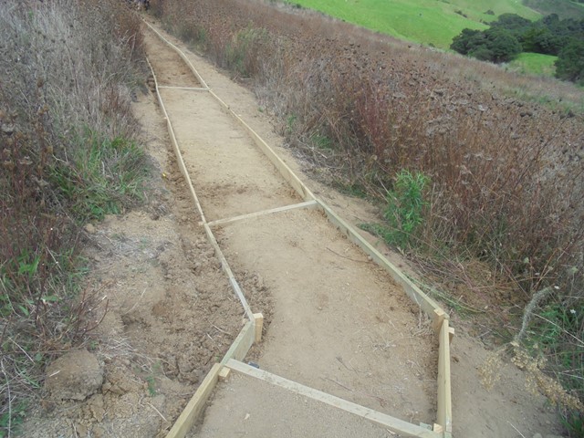 The team also boxed in some steps that were prone to erosion. They determined a better way to configure the steps and dug out sections to realign and improve the steps.