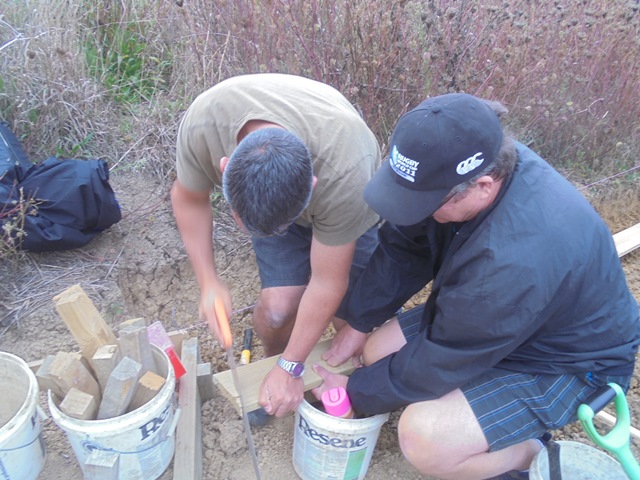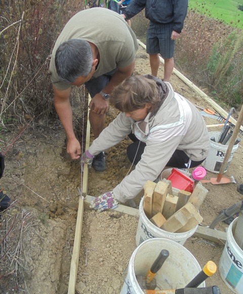 While most of the group worked on the long retaining walls, a smaller team tackled a curved section that had not been finished off. They studied the line of the track and determined the best way to complete the curve. It required a lot of measuring and cutting.