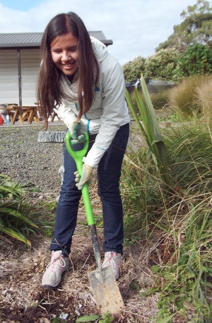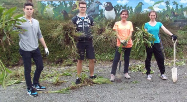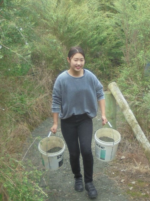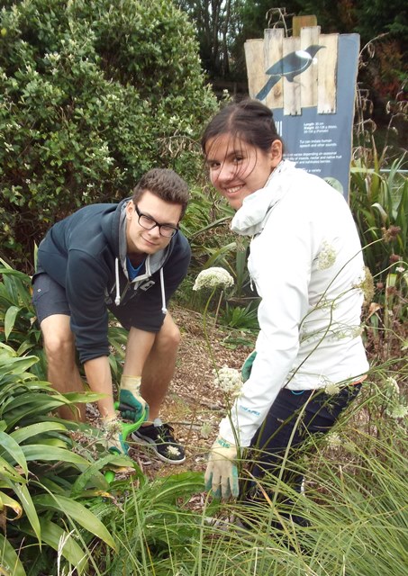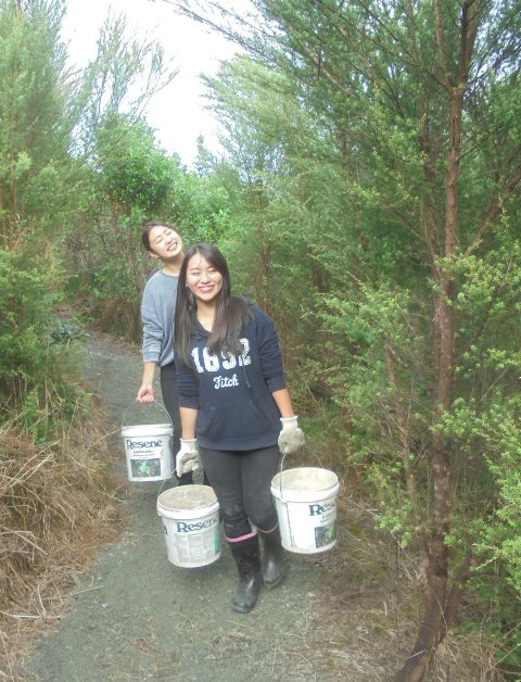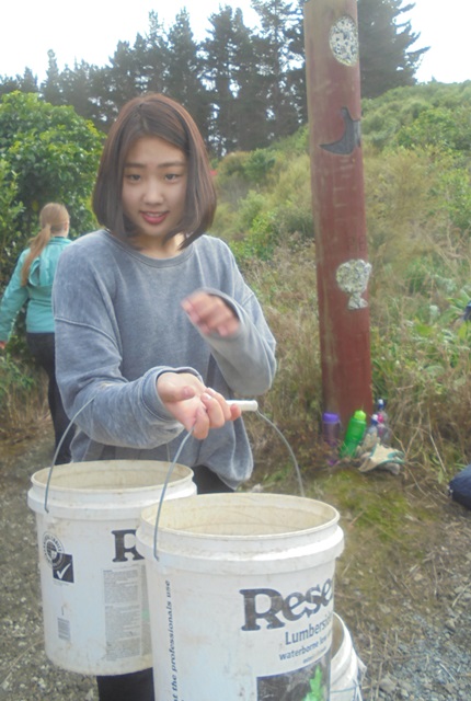 For the fourth year in a row, Adrienne Croad, International Students Development Manager, brought a group of students in the New Zealand Experience class to CUE Haven for a day of volunteering, exploring and learning a little bit about New Zealand plants and animals. Also joining the group today was teacher, Cecelia Tyne.