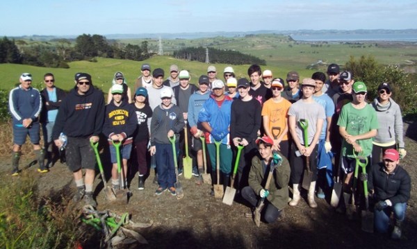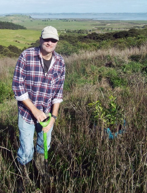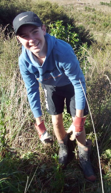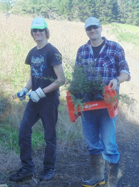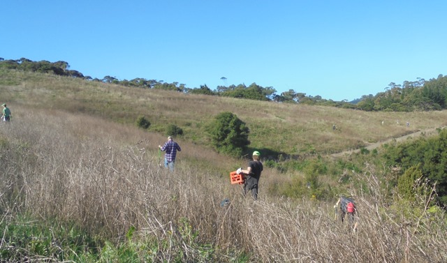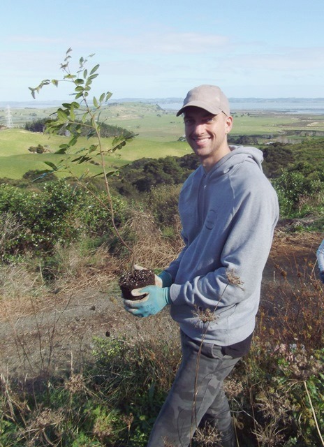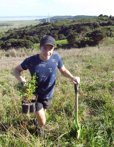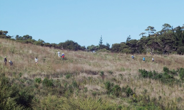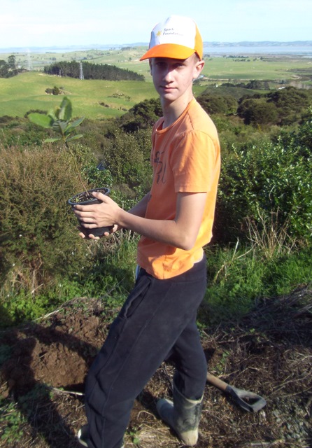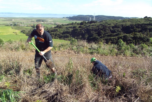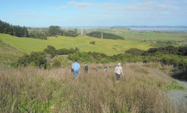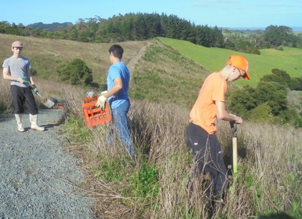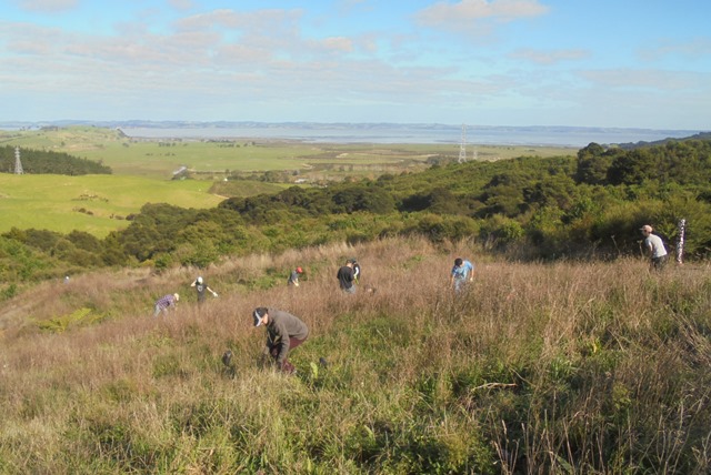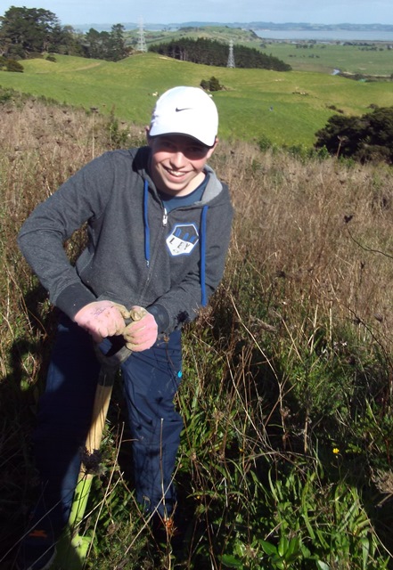 Today the group was planting at the very top of the property, filling in some gaps in the 2016 planting area with pioneer trees such as kohuhu, manuka, mahoe, tarata and karamu as well as some infill planting of canopy trees such as rimu, totara, taraire and puriri.