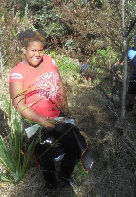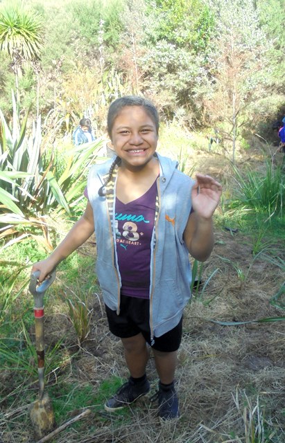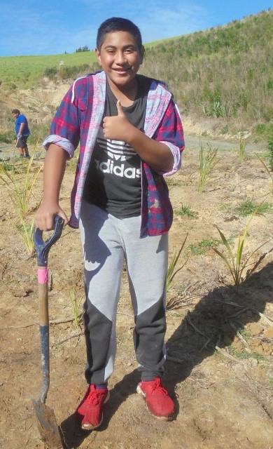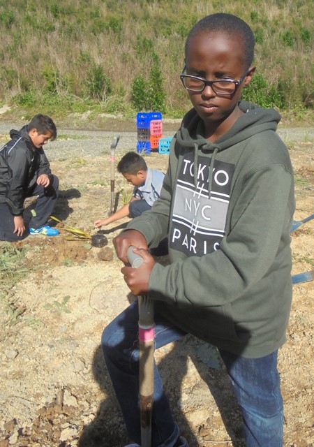 Today for the second year in a row, students from Avondale Intermediate School in Auckland came to CUE Haven for a Trees For Survival Planting day. The students planted trees they had grown in their nursery at school.
