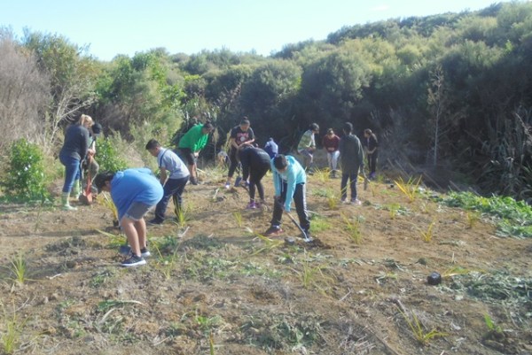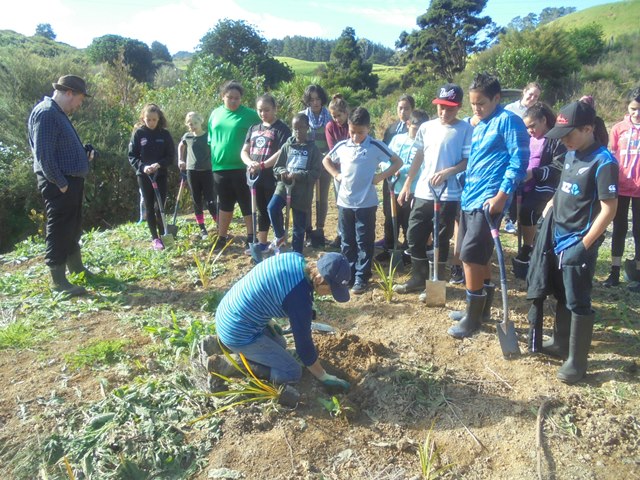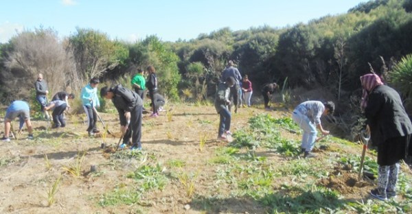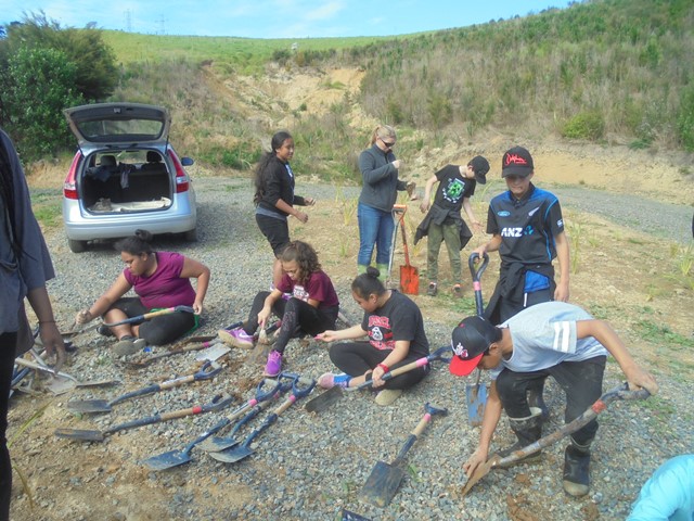 The students split into their respective classes and the plan was that one class would plant while the other attended the Waicare session, and then swap activities.