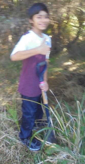 When we finished planting, the hard working students picked up the empty plant bags for recycling and helped clean the spades too.