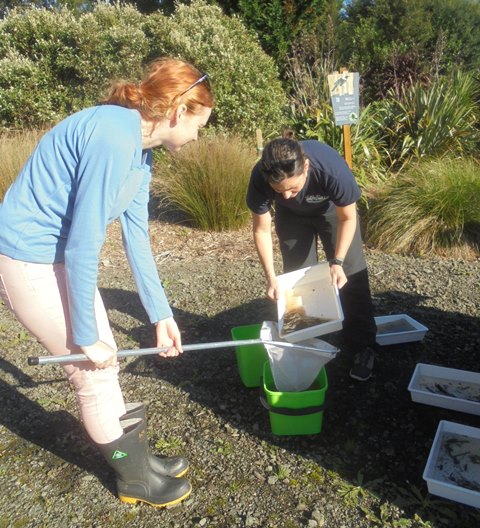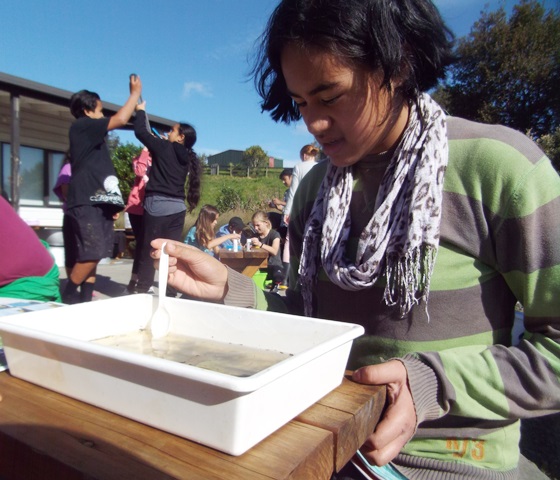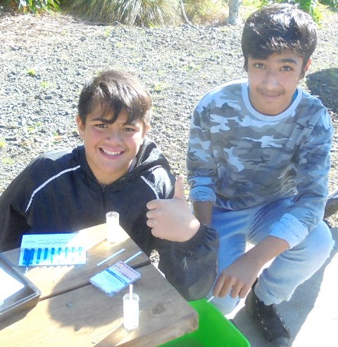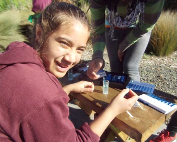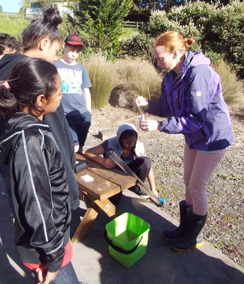 For the Waicare session Hazel and Libby had earlier collected some samples from the stream further up the property which the students would be testing.