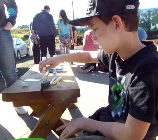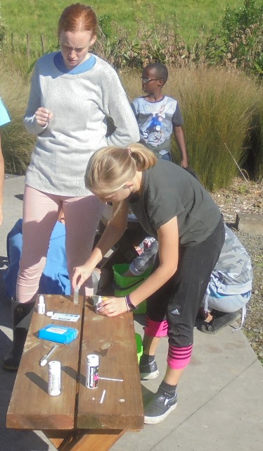 The students then broke into smaller groups so that each person had a chance to do all of the experiments. Hazel and Libby showed the students the different tests and supervised and assisted the work of the budding scientists.