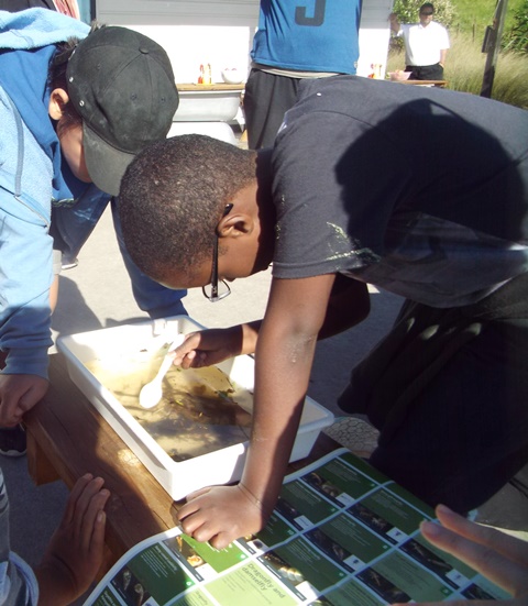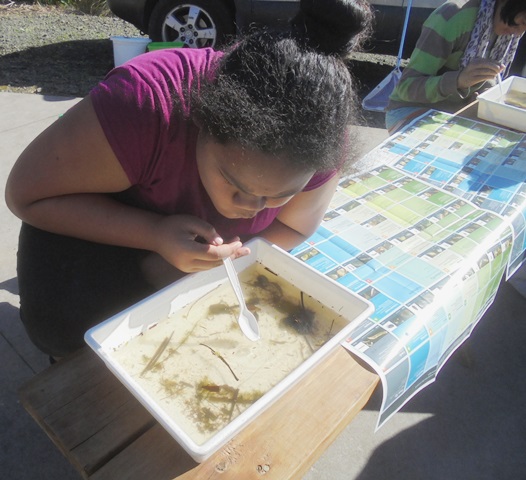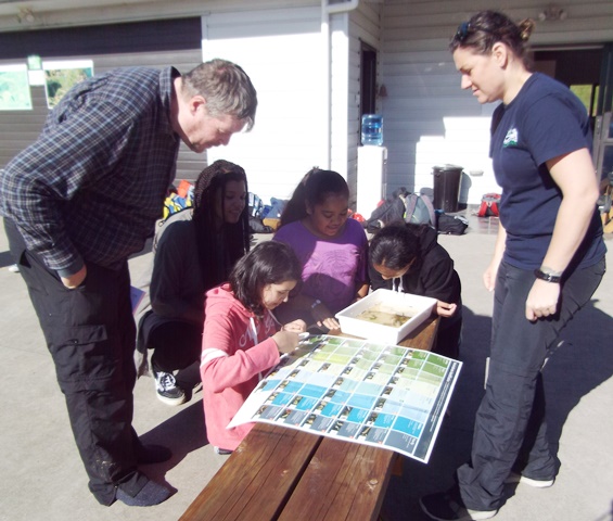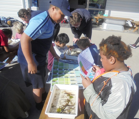 The most complex task involved studying the aquatic vegetation in the water samples and identifying the macroinvertebrates. Hazel and Libby provided the students with charts to help them with the identification process and some lab sheets where they could record their findings.
