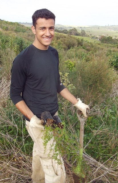 It was challenging planting as the team had to carry the plants a long way into the bush to find suitable places for the trees. Because these native trees will become forest giants, they have to be positioned at least three to five metres from the nearest canopy tree. The students planted kahikatea, lancewood, matai, miro, puriri, rewarewa, tanekaha, taraire and titoki.