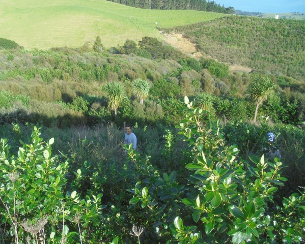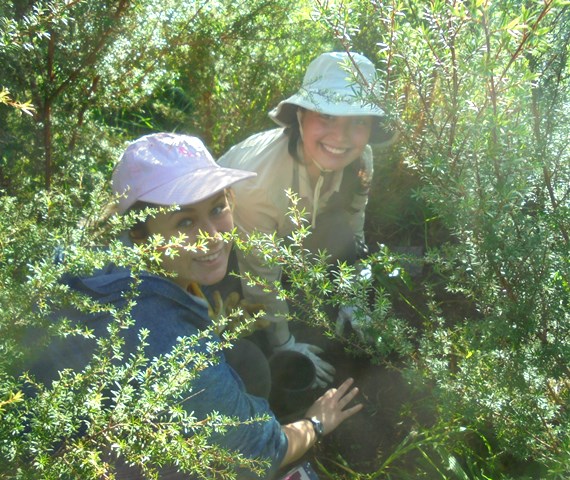 It was easy to get lost in the dense bush as the team searched for good planting spots!