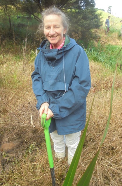After a quick planting demo the team soon got to work planting manuka, karamu, flax and cabbage trees.