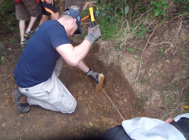 The Kiwi Property team broke into smaller teams and tackled different sections of the track. The first task involved clearing the mud from the slips and making room for the new retaining boards.