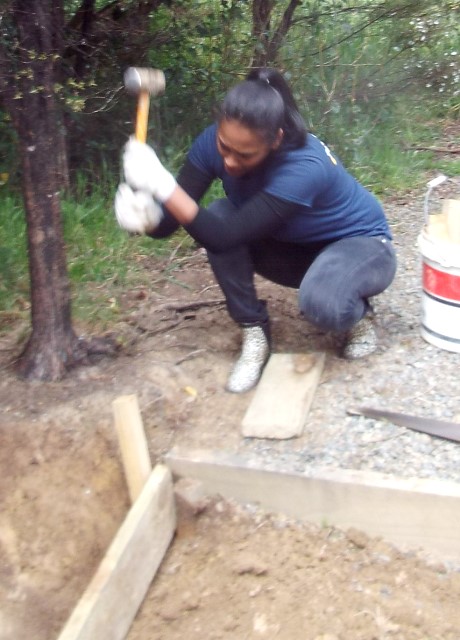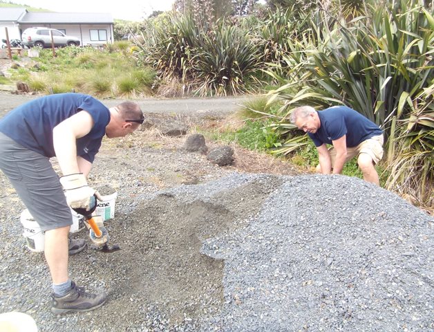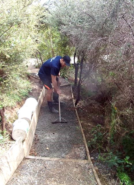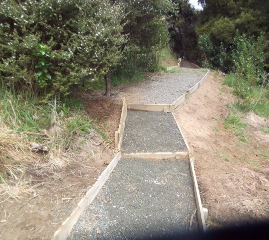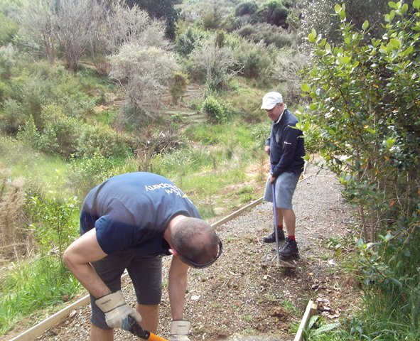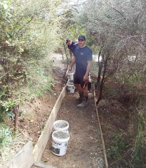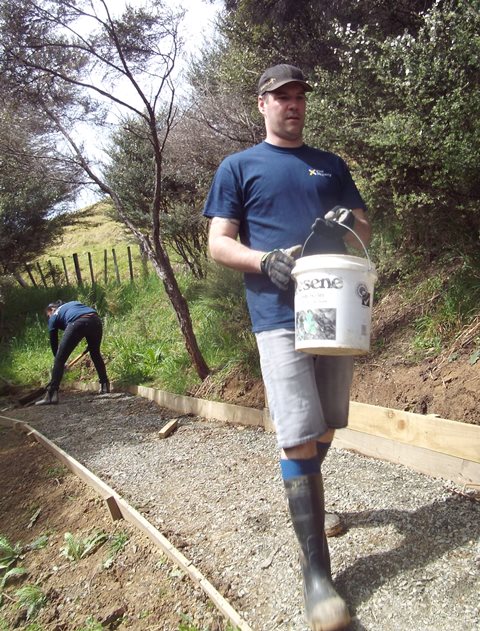 The team were keen to fully finish off the improved track, so we went down to the driveway to get some gravel to spread on the track to keep the surface safe in wet weather. Buckets were filled up and loaded on the ute and we drove as close to the track as possible.