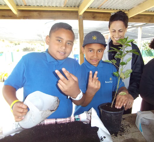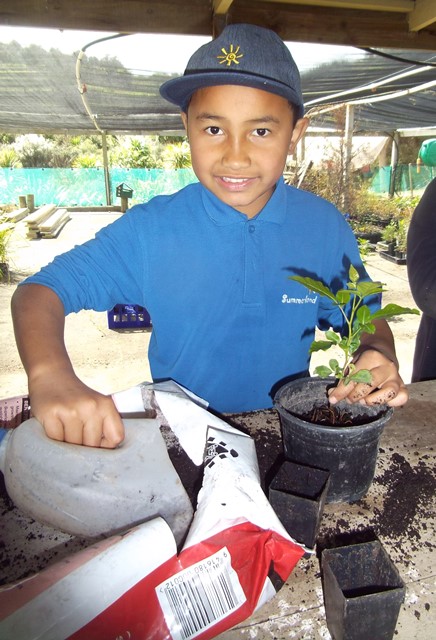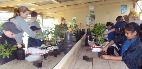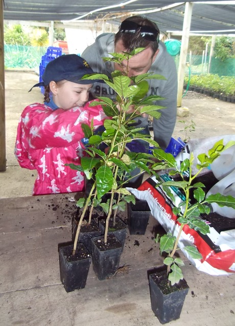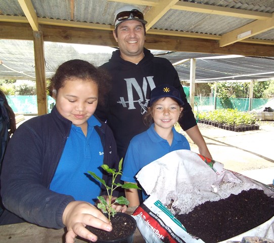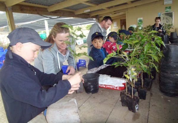 Also many thanks to our generous supporters – Nestle NZ for providing the delicious hot chocolate drink for the students and the coffee for the adults; Daltons, for providing the potting mix the students used to pot up their seedlings, and Scrub Growers Nursery for the manuka trees the students took home to plant.