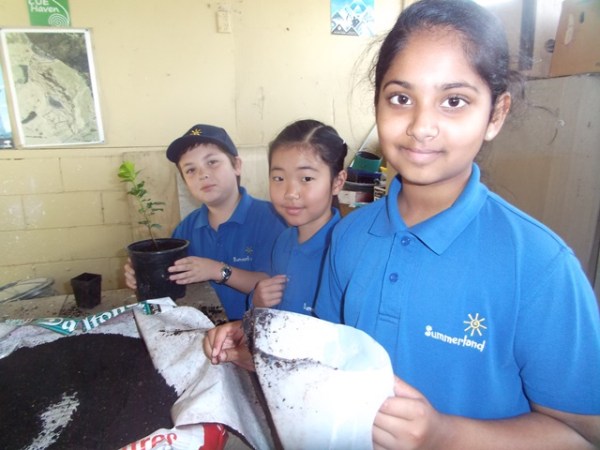 Mahrukh led the potting up session and gave a planting demo and safety briefing. Today the students potted kohekohe and puriri seedlings.