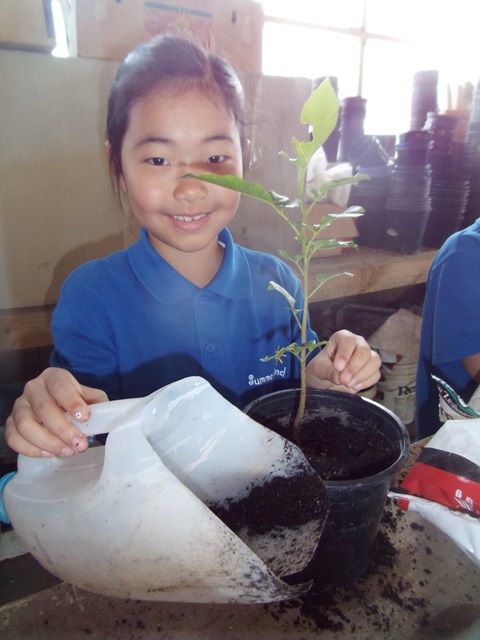 Once again, Maria and the parents helped out and the students had a fun time transplanting the seedlings.