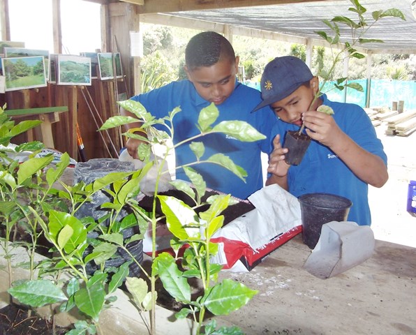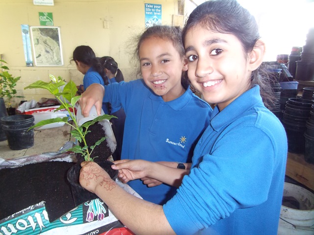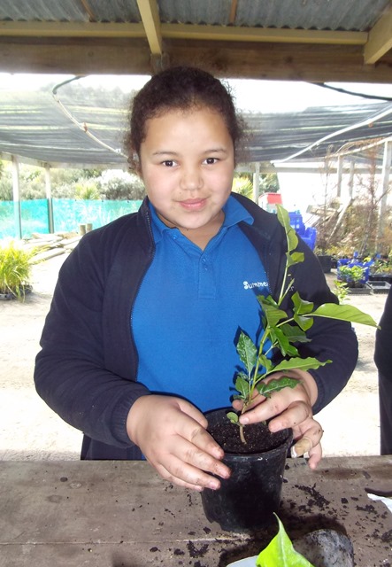 Mahrukh led the potting up session and gave a planting demo and safety briefing. Today the students potted kohekohe and puriri seedlings.