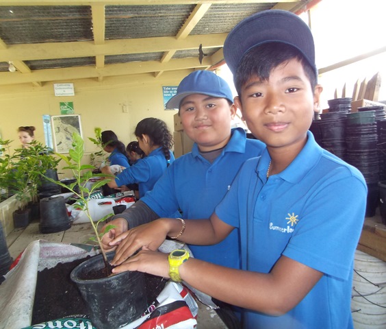 Once again, Maria and the parents helped out and the students had a fun time transplanting the seedlings.