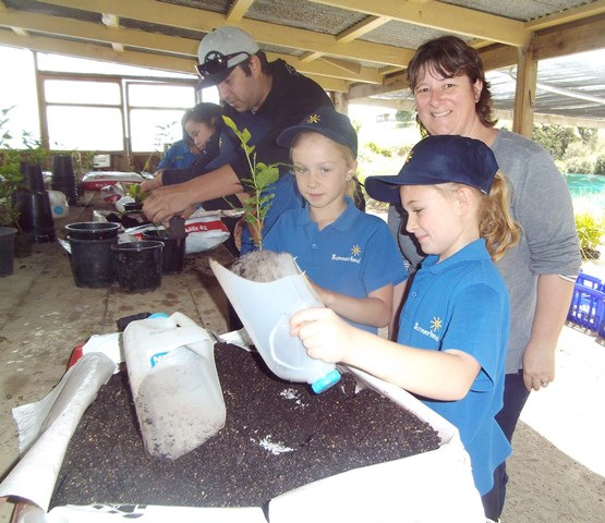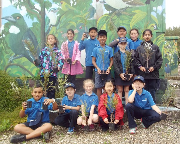 Also many thanks to our generous supporters – Nestle NZ for providing the delicious hot chocolate drink for the students and the coffee for the adults; Daltons, for providing the potting mix the students used to pot up their seedlings, and Scrub Growers Nursery for the manuka trees the students took home to plant.