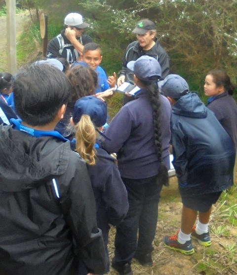 Thomas described our weed and pest control activities and showed the students tools and traps we use to track and control pest animals which would harm the native plants and animals.