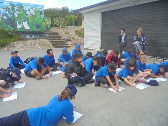 The students then had to describe what they heard, felt. They heard birds, the stream flowing and the wind. They smelled the hangihangi and the fresh forest scent.