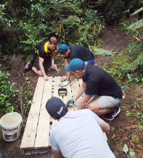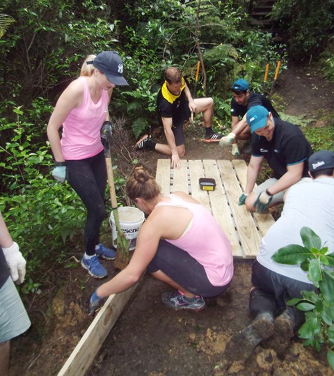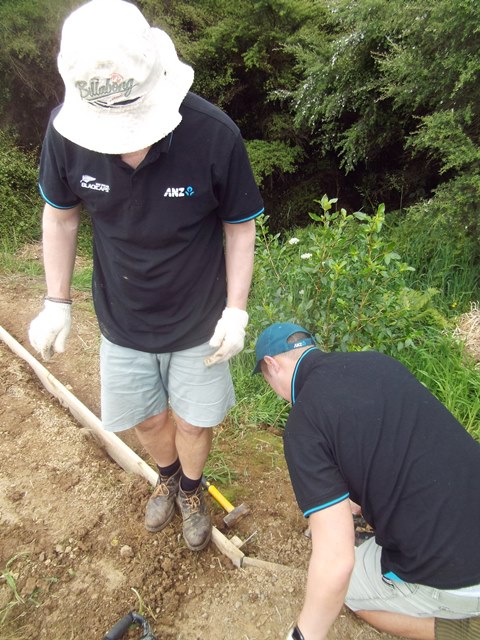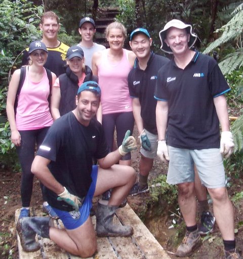 ANZ is one of New Zealand’s largest banks. They have a strong commitment to community service and since 2013, groups of ANZ professionals have been coming to CUE Haven to plant and help with maintenance work and today a group of 8 people from the corporate banking group spent the day helping us with walking track work.