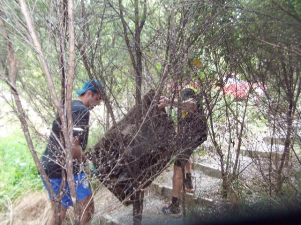 The team then carried out all of the tools and unused timber—and the old bridge–back to the nursery/workshop!
