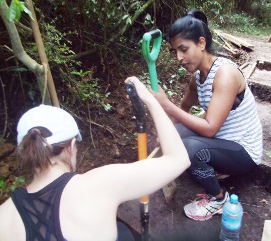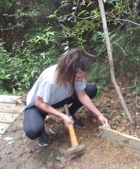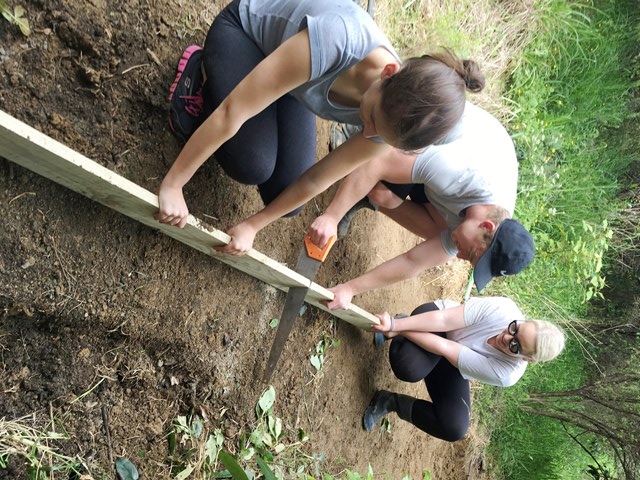 Another challenging task the group tackled was fixing up some steps that were eroding a bit. This required digging out the sides of the steps and measuring carefully and cutting wood planks to create the sides.