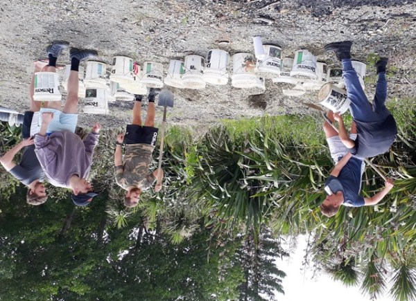 The gravel is down by the cottage and a fresh group of strong volunteers loaded it into buckets to take out to the track.