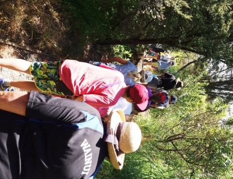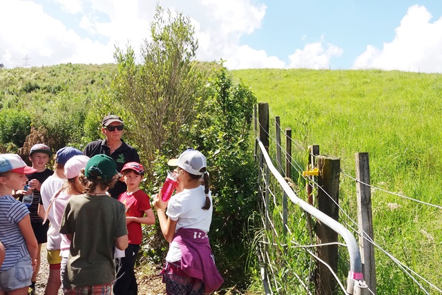 Thomas took half the group of adults and students for an hour long walk in the bush. Before starting out, he gave a safety briefing and talked a little bit about what they would see on the walk. He showed them the neighbour’s paddock to give the students an idea of how CUE Haven looked ten years ago and then showed them the 2008 and 2015 plantings so that they could compare the way the trees had grown up.