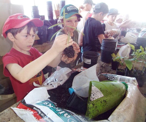 Mahrukh gave a potting demo and safety briefing and the students went to work. They worked in teams and, assisted by the parents and teachers, very quickly potted up a lot of seedlings.