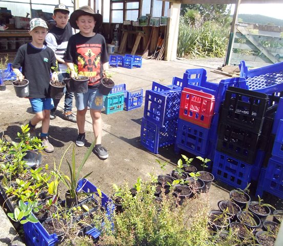 It didn’t take long to finish potting up a lot of plants and as the students finished potting the seedlings, they placed them in the hardening up area of the nursery. The trees will stay in the nursery for a year or two until they are ready to be planted as infill trees in the bush.