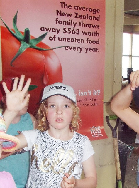 Auckland Council provided us with a number of educational posters and we hung one about food waste in the nursery. The students noticed it and agreed to be careful about food waste at home.