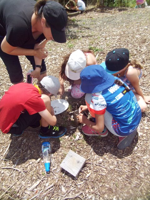The students got very creative in finding places to look for bugs. In addition to the spiders, slaters and beetles they found in the traps, the students also explored the trees and rocks in the area and found snails, slugs and skinks.