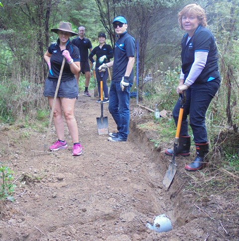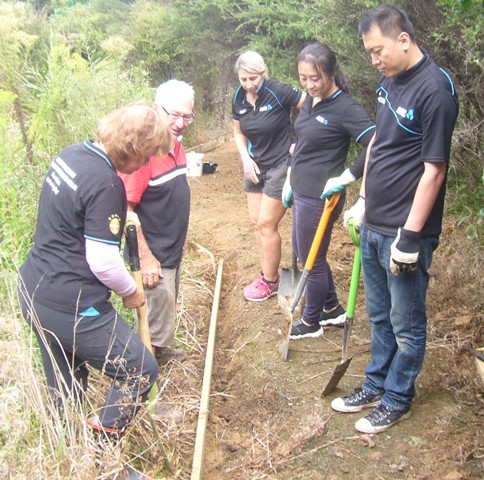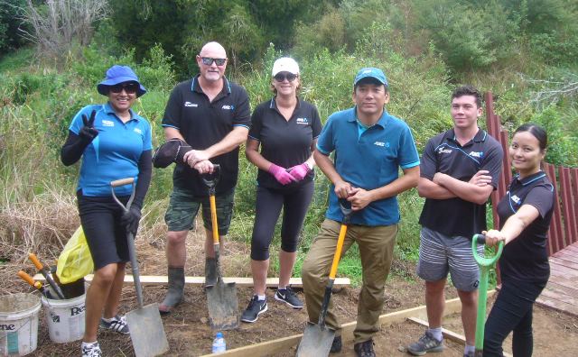 Today another hard working team from ANZ joined us to continue to improve the walking tracks at CUE Haven. This group was made up of managers from the North Shore’s Mobile Banking and Business Banking departments.