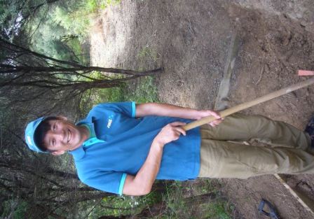 We drove Alan’s team up to the top and they went to work. The track was very narrow and showing a lot of wear. There were also some water drainage problems. The task for today was to continue to widen the track and improve drainage.