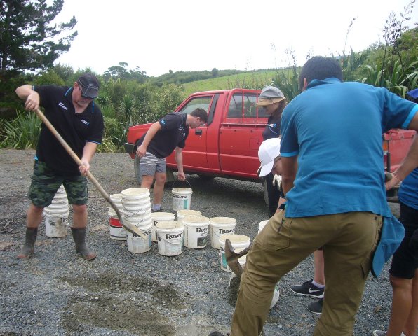 We loaded up empty buckets with gravel and drove them to the closest spot or unloading.