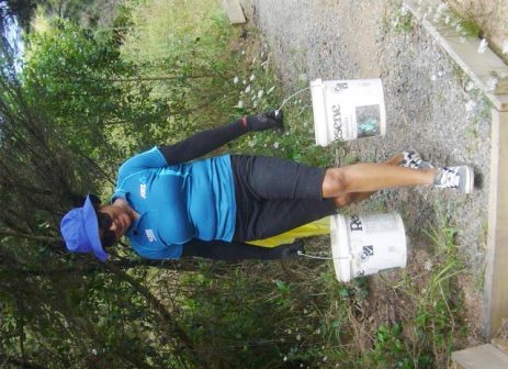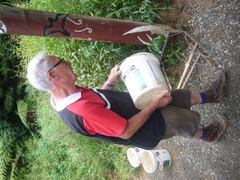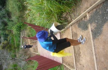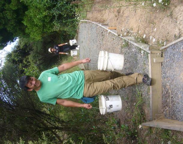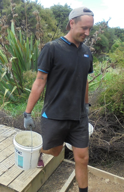 Both Alan’s & Thomas’s teams worked together on the last project for the day which was to put down a layer of gravel on the new track surfaces to make them easy and safe to walk on in all weather. The challenge was that there is no way to get the gravel down to the remote track sections except by hand in buckets!