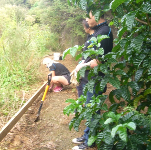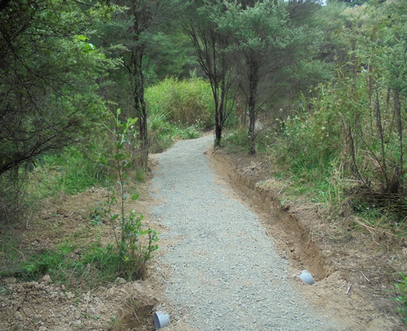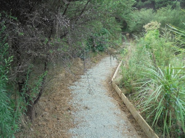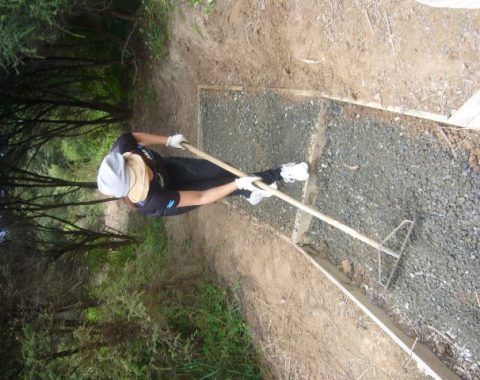 We broke the group into two teams. One group worked with Alan on a section of track near the top of the property. The other team went with Thomas to finish off the approaches to the new wetlands bridge.