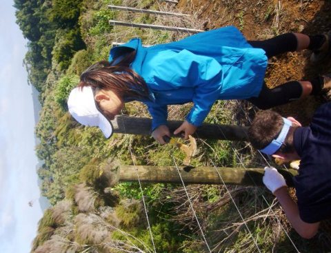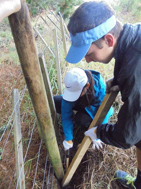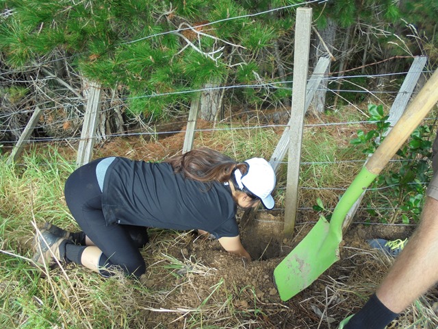The team had to tackle one of the most unusual projects ever done by a DoEHA group. A large section of fence near the top of the property had been damaged and several areas needed to be repaired and a large segment needed to be totally replaced. They went to work with a post hole digger, posts, wire, hammers and battens.