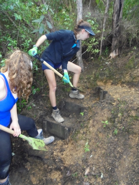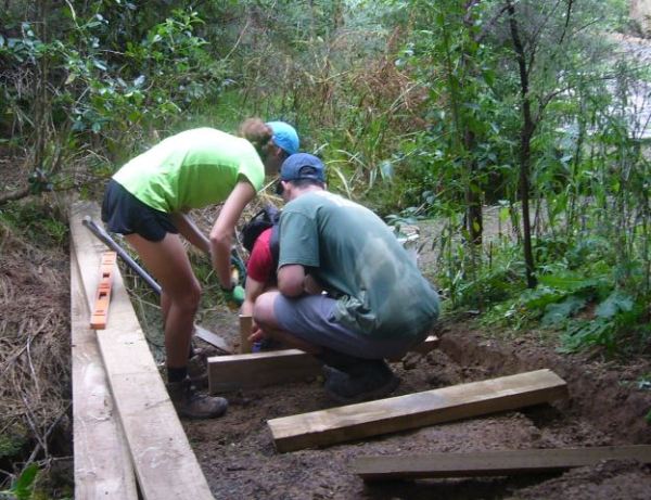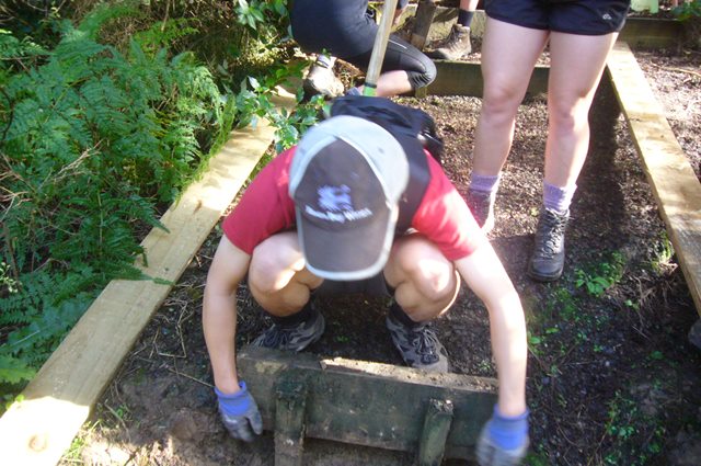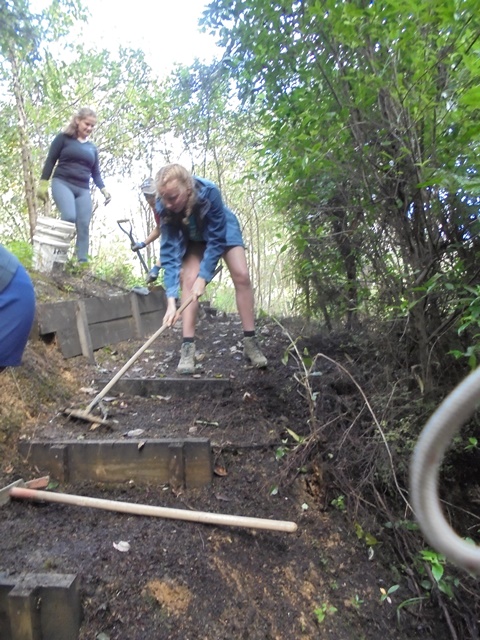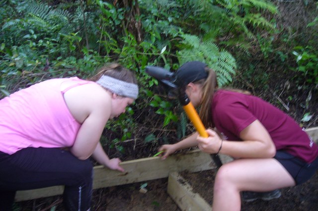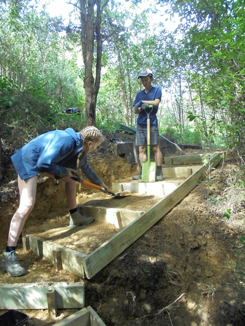 That was the fun part! They then went to work installing new steps and retaining walls, cutting out all the timber in the field and working together to make sure everything was level and even.