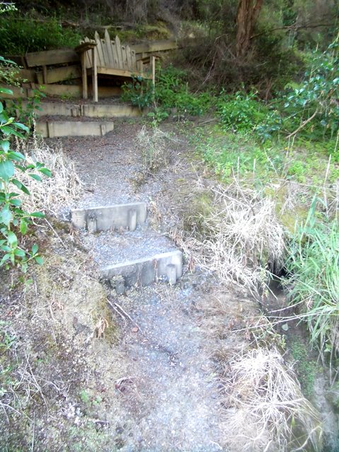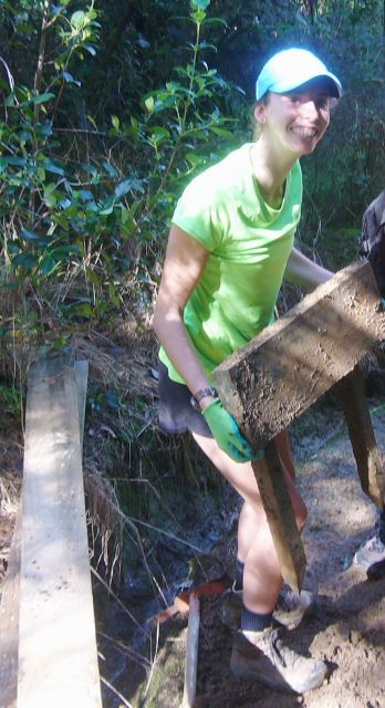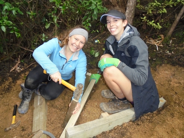 The final track remediation was the most challenging. It was one of the first tracks that we built in 2011, and there were steep, narrow steps going up from a bridge over the stream. The task was to make the steps wider and easier to use.