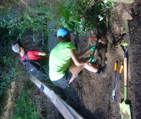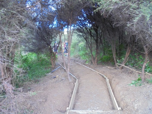 The team went to work, clearing and levelling the track and digging the channels for the side boards.