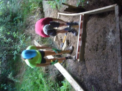 They also decided that side retaining walls should be installed to prevent erosion and they dug out channels for the boards.