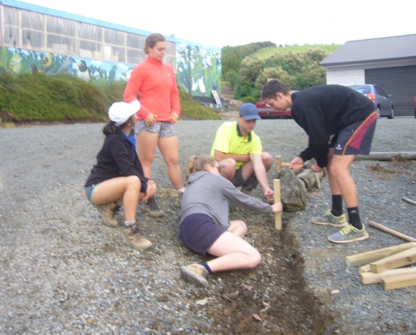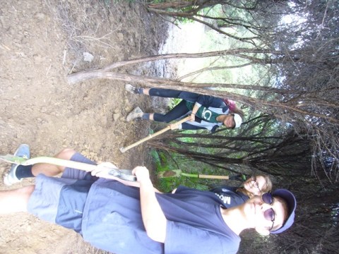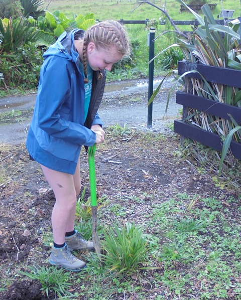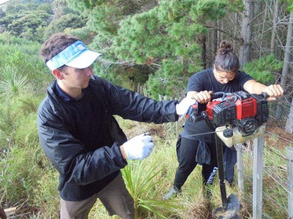 Andy and Pai trained the group in the safe operation of the post hole digger and they prepared holes for new and replacement posts.