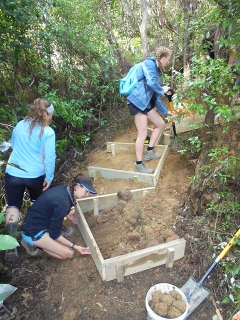 Some of the walking tracks at CUE Haven are over five years old and have seen a lot of wear and tear. We asked the team to work on fixing up three sections and each presented a different set of challenges. Over the course of the week all participants had the opportunity to work on the different track sections.